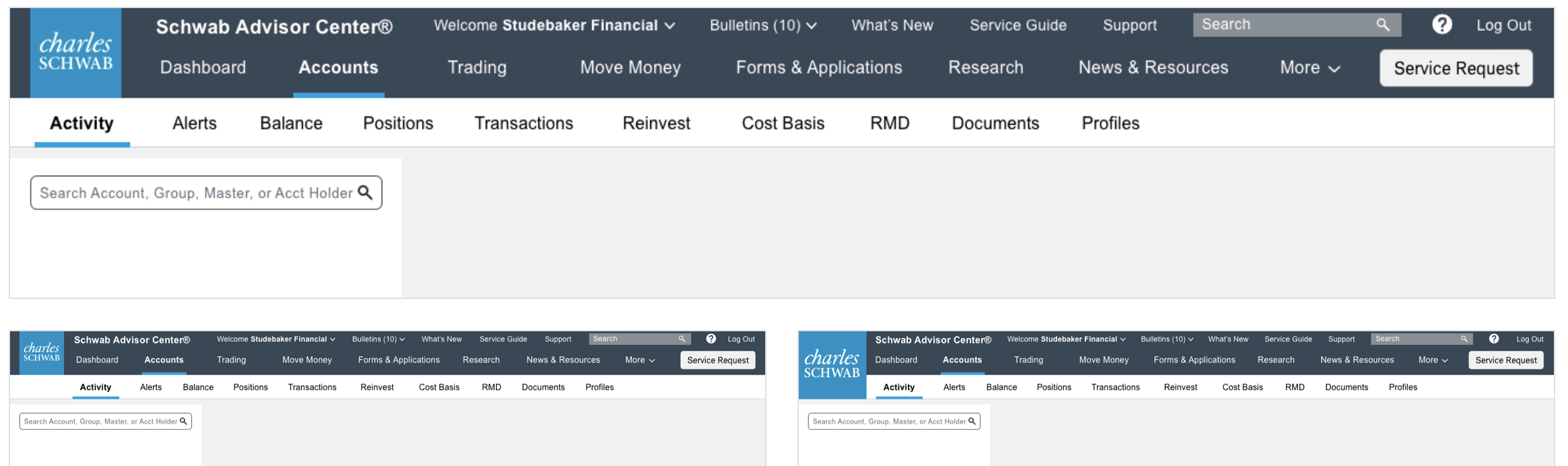 In 2020, Charles Schwab acquired TD Ameritrade. With that acquisition, two competing products for financial advisors brought redundancy. My team was given the task to combine the Schwab Advisor Center (SAC) and VeoOne, and improve the experience for all users.